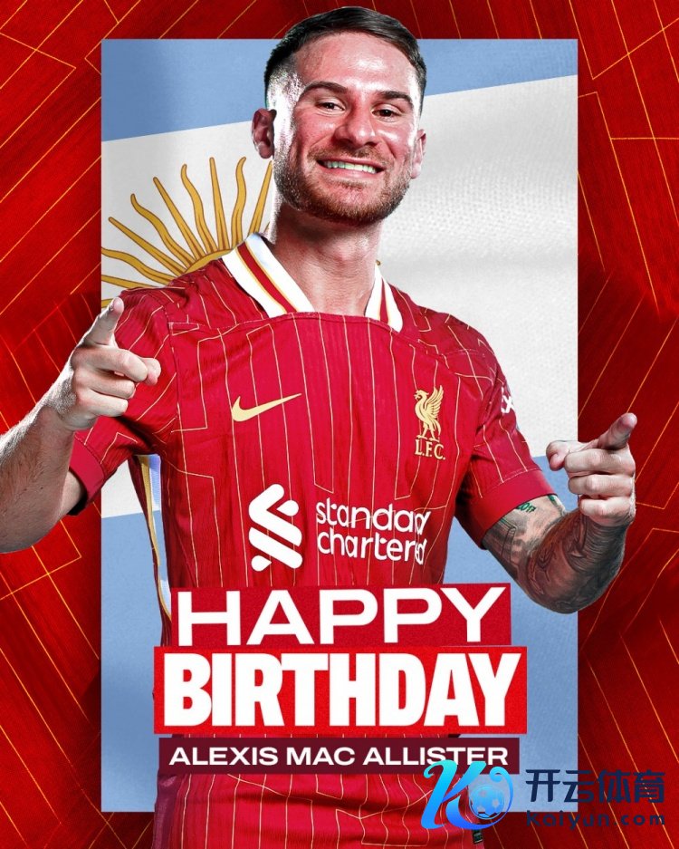 利物浦官方社媒晒出为麦卡利斯特制作的生辰海报,红色配景+阿根廷国旗,配文:“生辰好意思瞻念,麦卡!”