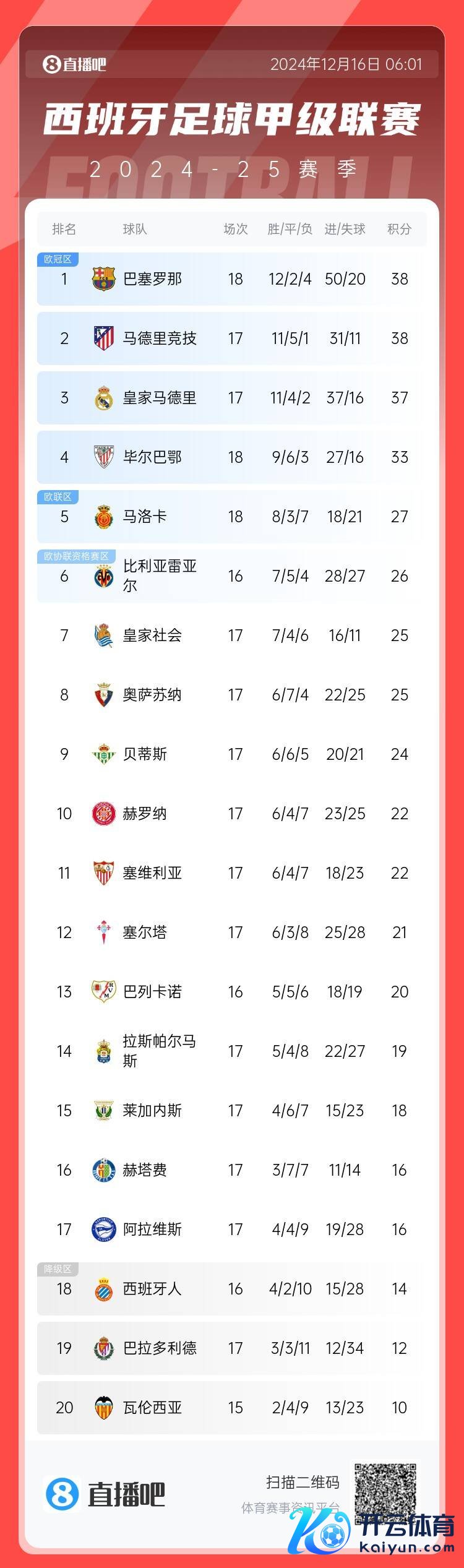 直播吧12月16日讯 西甲第17轮,巴萨0-1莱加内斯,近6轮西甲仅1胜,先赛1场与马竞同分。