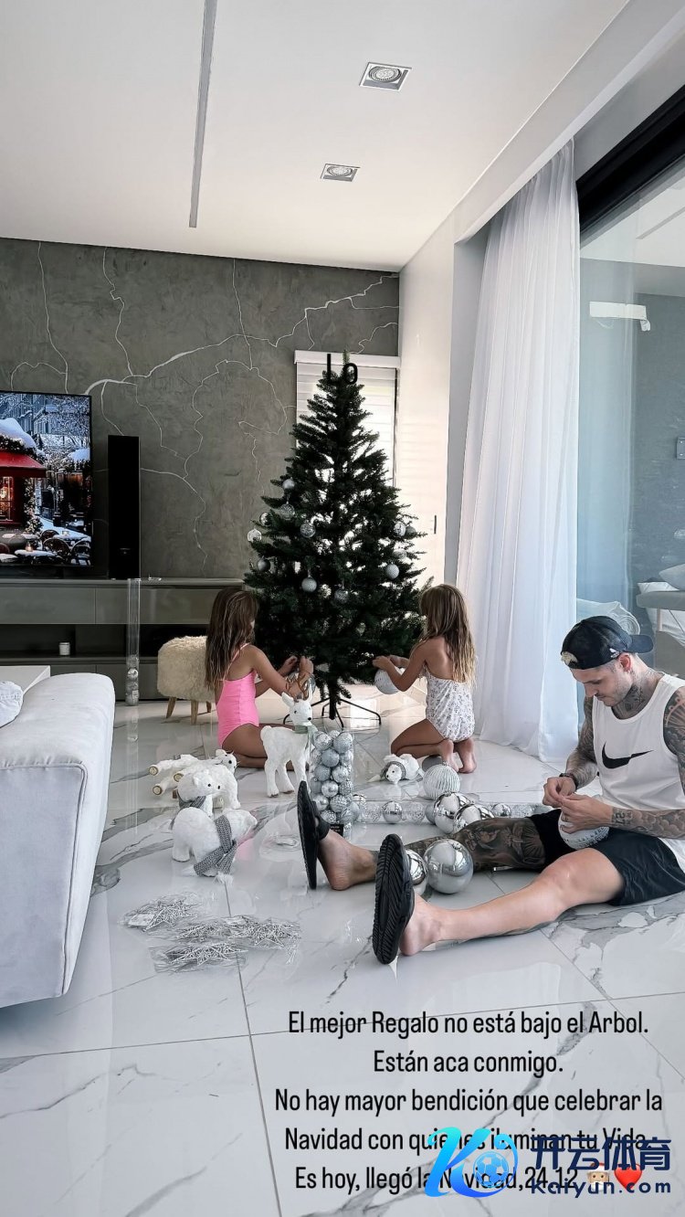 伊卡尔迪与两个犬子一谈遮拦圣诞树体育录像/图片,他在应付媒体上晒出相片,并写谈:“最佳的礼物不在圣诞树下,她们就在我身边。莫得比与照亮你生命的东谈主一谈庆祝圣诞节更幸福的事情了。今天等于如斯,(对我来说)圣诞节一经到来,12月24日。”