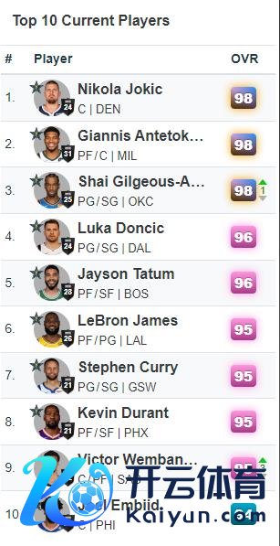 01月11日讯 NBA2K官方公布了球员才能值交流情况,亚历山大+1来到98,与字母哥、约基奇比肩定约第一。