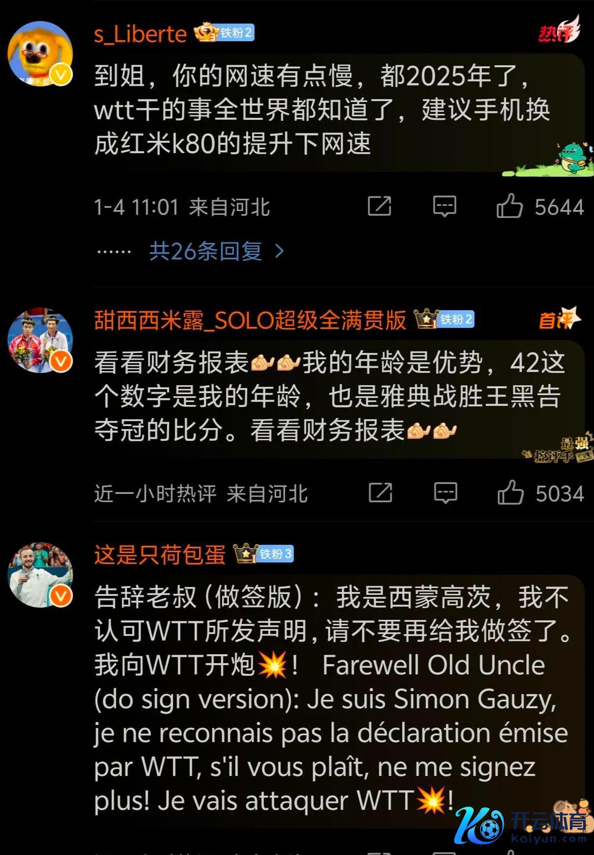 W TT对樊振东的工作活命给出了这么的回来:“梦念念永远魁岸,荣耀永远存在,愿将来的谈路愈加灿烂”。我原来以为下方的驳斥区会充满对樊振东竖立的祈福,但没念念到本色上是一派致敬,仅仅这些致敬稍显逆耳!