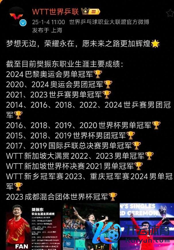 亲东谈主们体育赛事直播,锅照旧炸开了!北京时辰1月4日,W TT公司考究公布了樊振东工作活命中的要津竖立。